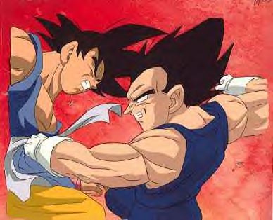 Vegeta throwing an elbow to Kakrotto's gut, Saya-jin Saga