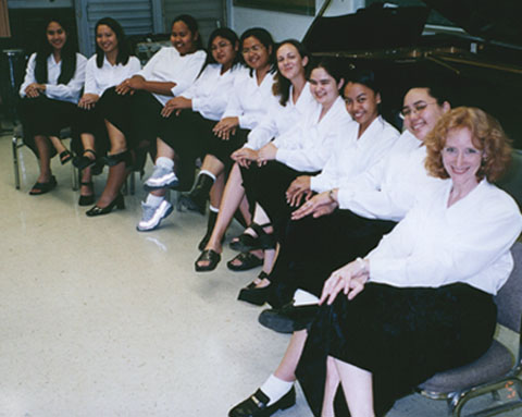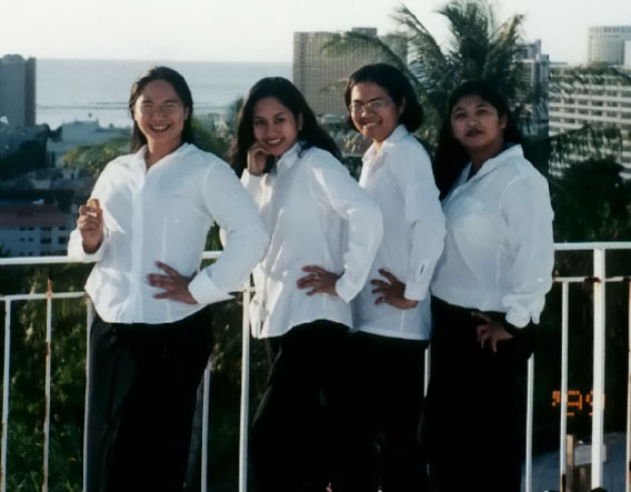from l to r: Lori, Tiff, Lee, Me, Crystal, and Eim after Aussie Tour rehearsal at JFK High (June 28, 2001)