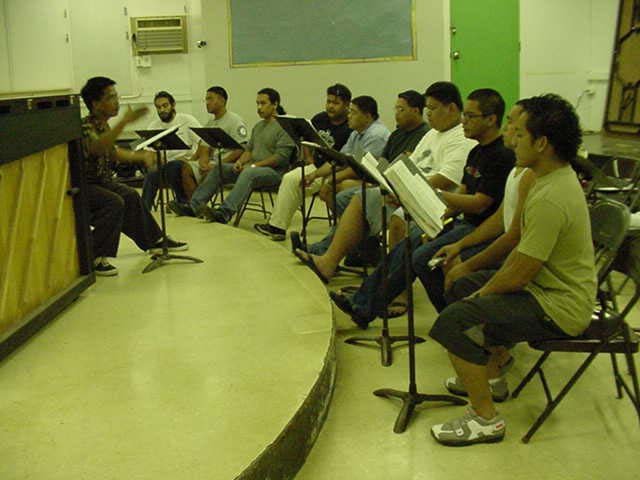 Max at work with the Cantate' men in my classroom at J.F.K.