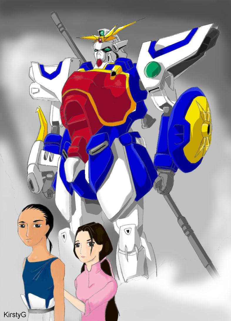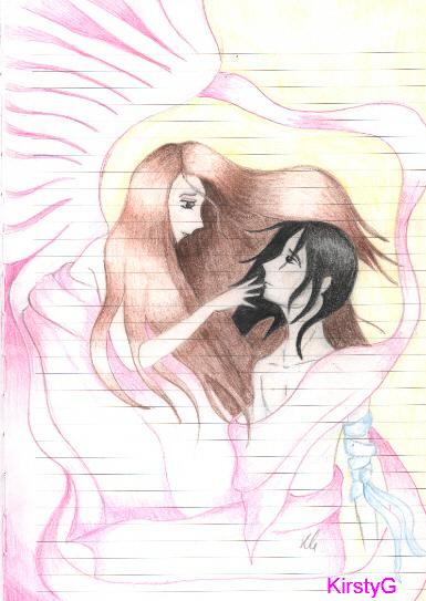 Wufei and His Angel - A drawing of Wufei and Senrei coloured in pencil