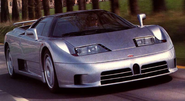 Bugatti EB110 SS Specifications Performance 0-30: 2.2 seconds 0-60: 3.3 seconds 0-100: 9.1 seconds 0-1/4 mile: 12.5 seconds Top speed: 217 MPH Engine V-12 650 HP Dimensions Height: 44.3 inches Width: 76.4 inches Length: 173.2 inches