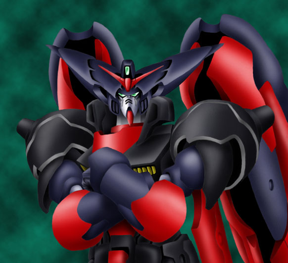 Master Gundam. Piloted by Master Asia from Neo-Hong Kong. Strongest attack is Darkness Finger and Sekihoken Tekyoken. |