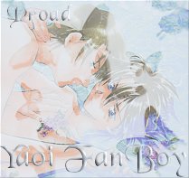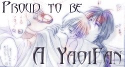 YaoiFan is just another place to pick up banners, but they're special banners. Each one of these proclaims proudly "I am a YaoiFan!" in one way or another. ^.^ I know that there are probably plenty of sites out there with something likes this, but... (shrug) What can I say? I'm unoriginal. ^^;; Save these to your computer and load them onto your website. If you want a link to your site posted here, mail me at moon_faerys_garden@yahoo.com, and I'll put it up. The only requirements for linking is tha the page or site contains some sort of yaoi, and that it have one of these banners on it. ^^;; I'll make the "supporters" list later, because there aren't any right now.