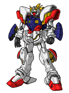 Created to represent Neo Japan in the 13th Gundam Fight, this mobile fighter's most powerful weapon is the high temperature "Shining Finger" grasp which can decapitate a rival gundam with a single blow. The Shining finger can also be used to heal fighters who have fallen victim to the DG (Devil Gundam) Cells.