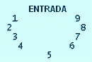 ahora por la puerta número 5. Al salir por la puerta número 2, entra finalmente por la puerta número 7.
