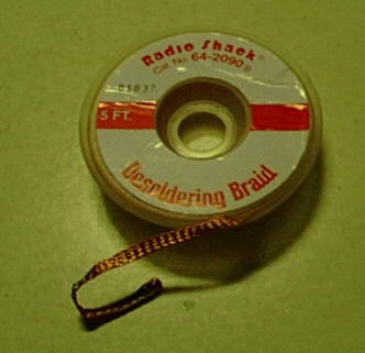 4. Desoldering braid - After using the desoldering suction pump, if there is any solder that you can't clean out that way, you may want to try using desoldering braid to absorb it. Be careful though since you don't want to heat it on the board for too long. You probably won't have to use this too much since you should be able to get most of the solder out using the suction pump after applying flux paste, but it's still good to have around for getting that last annoying bit out.