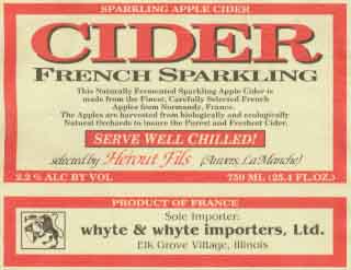 Cider french Sparkling. - A nice crisp cider with tart overtones and a dry finish.