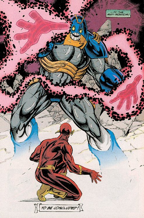The Anti-Monitor is a supremely-powerful anti-matter being created billions of years ago at the same time his inherent foe, the Monitor, was created in the positive-matter universe (DC Multiverse). The Anti-Monitor’s attempt to destroy all positive universes, which was partially successful, is known as the Crisis on Infinite Earths. He was destroyed by the teaming up of the DC Multiverse Heroes and the AK Multiverse Heroes.