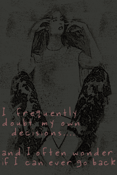 and not coming back escaping existence where love denotes pain full of the question "am I insane?" yearning to please so others accept deep hidden secrets within that I kept