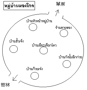พอเข้าไปจะเจอเด็กกับพวกคนในหมู่บ้าน ให้เดินไปบ้านของเรา จะเจอแม่เดินไปเดินมา