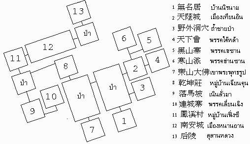 จะเจอซื่ออู่จุน (หลวงจีน) พอมันแพ้ ก็บอกว่าจะไปรอที่เมืองหนานอาน(เบอร์ 12 ในแผนผัง)แล้วจากนั้นพระเอกกับเสี่ยอั้นเทียนจะสู้กันเอง