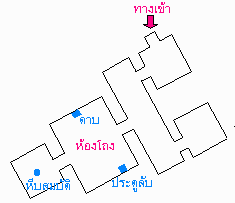 เข้าไปจะเห็นประตู2 ข้างของโต๊ะบูชา ให้เข้า ห้องด้านขวา