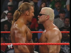eHw Original Steel Cage Barb Wire Hell! Scott Steiner has proven time and time again he is one of the most dominant and best wrestlers to ever step inside and eHw ring. Despite losing to the Sandman in the semi-finals of the tournament this past Tuesday, Steiner is very eager to once again be in the title picture, only one man stands in his way. Triple H, however had a very great Tuesday debuting for eHw scoring a victory over another debuting eHw superstar Sting. Intefernce by Shawn Michaels may have paid a part in the victory but Triple H still got the win and if history tells us anything Triple H may continue his winning ways for a long time. Triple H finds the ultimate test of how far he may go with eHw in Scott Steiner. A win for Triple H over Steiner means instant World Title contention, but that's much easier said than done. With a steel cage keeping out any chance of Michaels interfering in the match, the real winner will be decided. Will Triple H once again to find a way to win? Or will Scott Steiner shake off his loss to the Sandman and prove to eHw fans all around the world why nobody messes with the Big Bad Booty Daddy.