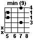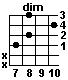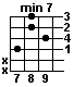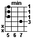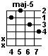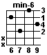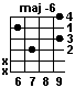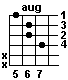 All the chords illustrated below show how to play only A chords. A major, A minor, A dim and so on. But you can move these chords around to play in other keys. By moving the finger patterns below, down two frets would be all G type chords. Move everything two frets higher, would be the B type of chords. The root of the each chord is found on the 4th string, this would be the D string. Notice that the all the notes on the D string below are A notes. It is recommended that you learn how to play all these chords using a different root. Move the Root note up and down the fret board and figure out the other chords as you move. You can use the blank guitar fret board illustrations to come up with your own chords.