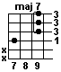 4th String Root Chords The Chords illustrated below are chords that are formed by the note on the 4th string. Although the Low E string and the A string have an (X) which means don't play, you can play the open A string for the A chords illustrated. Look at the 1st illustration below. It shows the chord formed at the 5th fret. Notice the A note at the 7th fret (4th string or the D string). This illustration shows how to play the A chord. But, by moving this chord either up or down the fret board, you can play other chords.