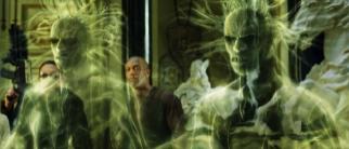 The important key players from the first film return and they are simply just cool. There’s nothing more to say, Neo is extremely cool, Trinity is attractively cool, and Morpheus is any adjective cool. Well, I think you get the idea. As with any sequel, there are now a few new characters in this movie. The first mention must go to Persephone (Italian Monica Bellucci) who is absolutely gorgeous and seductive, mamma mia! She provides one of the best scenes in the movie where she demands a kiss from Neo because she wants to feel the passion he has for his girlfriend. Not only is the scene sexy but it’s also humourous, pure fun for everyone…well not so much for Trinity. Then there’s her husband Merovingian (Lambert Wilson). He’s funny because of the way that he speaks with his accent and he provides some great lines. For example, after Neo stops and drops dozens of bullets shot at him merely by raising his hand at the beginning of another awesome action sequence, Merovingian says, “Okay, you have some skill.?No kidding, Neo is now faster, stronger, and even more powerful. The only question that I have for Merovingian who is cheating on Persephone is what is wrong with you?! The man has quite a few henchmen but the Terrible Twins (Neil and Adrian Rayment) stand out with their dreadlock hair and albino skin. The duo can heal their bodies instantly by morphing into ghostlike shadows of themselves, which also allows them to go from place to place. It basically means that nothing can really hurt the pair since fists, swords, and bullets go right through them when they are in this state.
