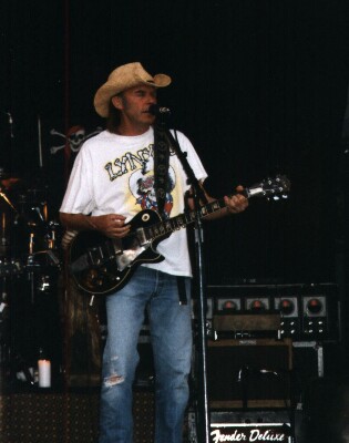 Finally, at around 8:30, Mr. Young and Crazy Horse took the stage. He opened with a song off his new album Greendale, complete with actors onstage acting out the lyrics. As this was going on, I was thinking, "Wow, this is a cool idea. I like this show already." As the song ended, the actors stayed on stage. "What are they doing?" we all wondered. Ol' Neil stepped up to the mic and explained that he wanted to tell a story, a story about the town of Greendale. For the next hour and a half, Young proceeded to play every song from the yet-to-be-released album, each song acted out by an entire cast of actors. This wouldn't be too bad of a thing, but for the first hour and a half he played only this! There was no "Old Man", there was no "The Needle and the Damage Done", and there was no "Down by the River". All there was was the story of the fictional Green family from the fictional town of Greendale.