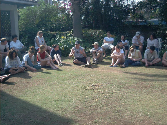 Everyone listening to Mr. Bolger on the lawn at CCIDD