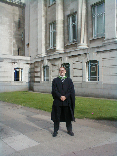 This is me in my finery outside the Parkinson Building at Leeds University just before I was conferred the degree of Bachelor of Science in Physiology.