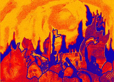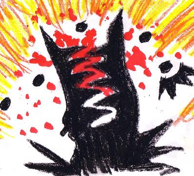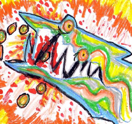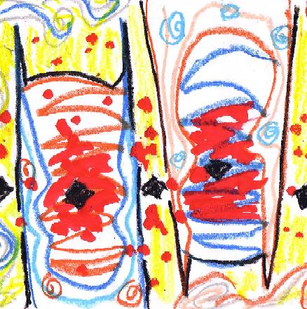 Drawings depicting the Spicks chewing off the Participants that protect the Flower and Child. (Oil Pastel)