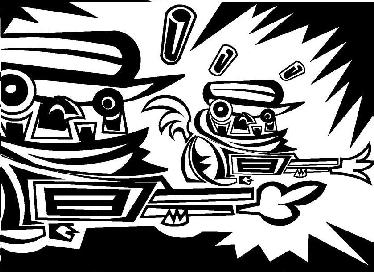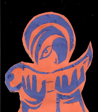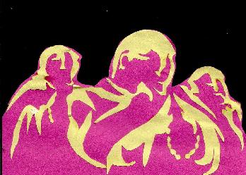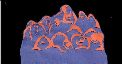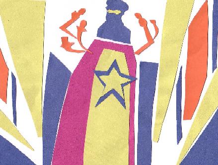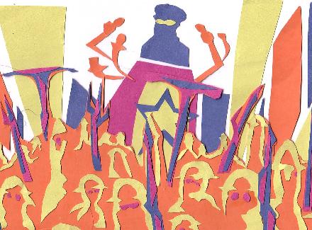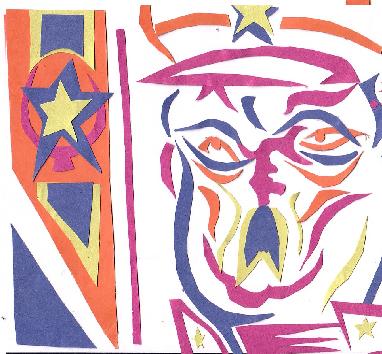 The pictures above are cut-out colored papers arranged according to the artist's impression of a tyranical leader.