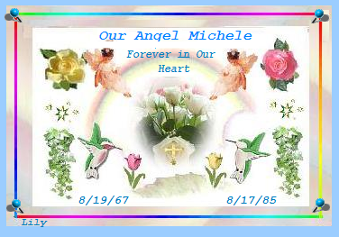 Michele Denise Shaffer August 19, 1967 - August 17, 1985 ![]() ![]() ![]() Go ahead and mention my child The one that died, You know Don't worry about hurting me further The depth of my pain doesn't show. Don't worry about making me cry I'm already crying inside Help me to heal by releasing The tears that I try to hide. I'm hurt when you just keep silent Pretending it doesn't exist I'd rather you'd mention my child Knowing that he has been missed. You asked me how I'm doing. I say "Pretty good" or "fine" But healing is something on-going I feel it will take a lifetime. ~ By Elizabeth Dent ![]() ![]() ![]() ![]() ![]() ![]() and Michele my youngest daughter that I lost when she was 18. ![]() You never said I'm leaving You never said goodbye You were gone before I knew it And only God knows why A million times I needed you, A million times I cried If love alone could have saved you, You never would have died In life I loved you dearly In death I love you still In my heart you hold a place, That no one could ever fill It broke my heart to lose you, But you didn't go alone For part of me went with you, The day God took you home. ~ Author unknown ![]() ![]() ![]() ![]() ![]() ![]() ![]() ![]() ![]() Never a day passes by that I don't think of you Never a day passes that I don't say "I Love You" I cannot truthfully say I'm doing fine Not now, but maybe later with time Missing you aches my heart so terribly bad Not having you makes me oh so sad Many times I search the rooms for you Many times I catch myself calling for you There's this guilt, like a cancer inside of me Ever gnawing ever tormenting me The what if's, if I had only or If I had done this We all have that "what if" list I know within my heart it had to be It's just so hard for a parent to see We want our children to outlive us Not for them to die before us My life must and will go on Only my hurt and sorrow will also come along My darling child I shall forever miss you And forever and ever will I Love You... ~ Author unknown ![]() ![]() ![]() ![]() ![]() Once again I am sending you much love and asking the dear Lord to bring your heart peace. You have many compassionate sisters that walk with you With Love Ann, Laurasmom ![]() not as the world giveth, give I unto you. Let not your heart be troubled, neither let it be afraid." (John 14.27) ![]() ![]() ![]() ![]() ![]() ![]() ![]() ![]() ![]() ![]() ![]() ![]() ![]() A friend can hear a tear drop. ![]() This webpage is created ![]() ![]() ![]() ![]() Maria's Tribute to Christopher ![]() ![]() ![]() ![]() ![]() ![]() Your daughter, now your ANGEL The love of your life You think has gone She hasn't gone at all Please put your trust In OUR LORD HE will guide you through It All Don't think of Michele as gone She is just beyond the Crest We have to believe in our Hearts GOD only takes the best Written By Sue-Anne Aguilera~~~Lee'sMom MY DEEPEST LOVE WILMA ![]() ![]() ![]() ![]() ![]() Sign My Guestbook ![]() ![]() ![]() ![]() ![]() ![]() |