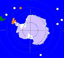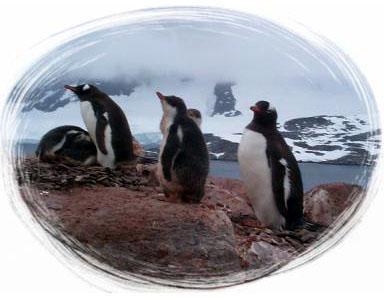 Gentoo Penguins hollow out a nest in the ground and line it with grass. Two eggs are laid in September or October, and incubation usually takes about 35 to 39 days from the laying of the last egg. The Second egg is smaller than the first and is laid three days later. Then the male penguin and female penguin take turns keeping the egg warm against their brood patch (Featherless area on a Penguins belly). After they are three-quarters grown, the young are able to look after themselves and leave there nests to form large crèches (group like huddles of chicks). Food for the chicks comes straight from a parent's mouth. The adults return with undigested food stored in their crop (A special pouch in the Parents mouth). A chick fits it's bill inside the adult's mouth to receive the food. The parents then regurgitate the food for the chick to eat. Imagine looking for your parents among millions of others! In the Penguin world, chicks and parents recognize each other's calls and always find one another. Even while the chick is coming out of it's egg, it is calling so it's parent will get to know its voice. | ||