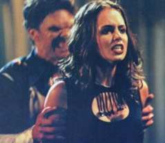 Last we saw of Faith, she'd been placed in a coma after Buffy tried to kill her feed her blood to Angel...according to the VIPS at the WB, this is so Eliza has an entire summer to decide if she wants to be a regular cast member or not. If I were her, I'd choose college or guest starring. Faith isn't such an endearing character (despite what all these horny guys say) and plenty of people are rooting for her death. I'm waiting for the next slayer myself 0:-) Funny sidenote - I saw a cool Faith/Buffy ship thing the other night which had me "roflmbo* until I thought about it. (Yes I have a lot of free time) They made a whole big deal about Faith's sexual innuendos always being around Buffy and how they were dates to the Homecoming Dance - although she did get kind of beat up on the way there...but now that I think about it Buffy does visit Faith a lot - and she does dress kind of suggestively around her...hmmmmmmmm And then who can forget the whole "Slaying makes me hungry and horny" said quite possibly to Buffy...her favorite Slayer? They've even done the whole "synchronised slaying thing" and might be into more synchronised activities *eg* Both have had bad luck with men - undead or otherwise and both are slayers - so who would best understand the other? I think Buffy and Faith could possibly turn to each other... I'll have to think about this some more.
