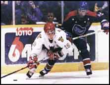 (seen here) He wore #19. Then something happened that brought him one step closer to living his dream. He was drafted by Detroit in 1992.He played for Detroit in 1993-1994. He took on the role of the enforcer. He became a big part of the team. Darren had won himself a place in every Red Wing fan's heart. Through the years he became more than a tough guy. He scored many important goals. (Including th cup clinching goal in 1997's game 4 sweep,for Detroit's first Stanley Cup in 42 years!) He had a season high of 19 goals in 97. He was an important part in the Wing's depth that made them a dinasty. His penalty minutes went down and his numbers went up.It seemed as if his life had taken a turn for the good.
