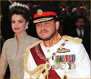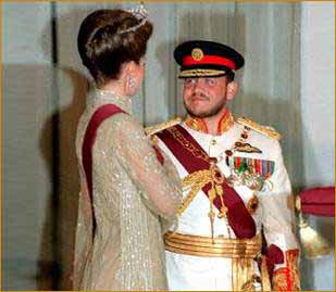 King Abdullah smiles at Queen Rania after presenting her with Jordan's highest decoration, the Hussein ibn Ali medal.