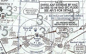 The airspace was divided into three areas. The tower airspace was class D, about 10nm across, and included Bucholz Army Airfield.