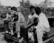 Ed Spilman on KwajaleinMy journey to Kwajalein started as follows. I was transferred from San Diego to receiving station San Francisco for further orders in the early fall of 1947. My orders came through to go aboard USS General W.A. Mann APA-112. We then sailed from San Francisco to Pearl Harbor. After a few days at Pearl we went on to Guam. I was assigned to receiving station in Guam awaiting further orders. After a few days the orders came through that I was to be transferred to Kwajalein Ship Security Detail. I flew from Guam to Kwajalein, arriving early evening, and saw a whole fleet of ships anchored in the lagoon. At that time I thought, "Here I go ... I'm going to finally get my sea duty!" |