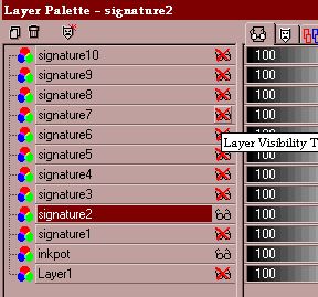 8)Close all layers EXCEPT Signature2 and the inkwell.