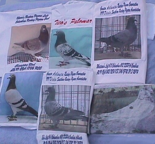 ......................... Hola COLOMBOFILOS de todas las esquinas del mundo. Les deseamos una temporada exitosa de Palomas para ESTE Y TEMPORARADA. De manera para poder asistirles en la Promocion de nuestro deporte de Palomas de Carreras, y para fortalecer nuestra union entre nuestros miembros, y para poder reclutar el valioso deportista del manana que es nuestro miembros menores (la juventud). Simultaneamente levantando el conocimiento publico de nuestra exisistencia. Estos Polos o Camisetas se pueden personificar con sus propias Palomas o con el ganador de la temporada anterior. Los siguiente es como comunicarse para pedir su propia Playera de Palomas (Polos, Camisetas) de Carreras. COLOR Blanco (otros colores disponible): HANES HEAVYWEIGHTS 50/50 (AMARILLO, AZUL CLARO, Y CENIZA)(50% ALGODON 50% POLYESTER)(100% algodon) La playera o Polos demuestra una paloma elegante, colorido y de tamano vivo en la Playera de la marca HANES en todos los tamano. No se conforme con la manera anticuada en que se dibuje La Paloma de Carrera que no sea digna de una ave tan majestuosa. Por tan solo SIETE dolares y NOVENTA CINCO centavos Americanos ($7.45) por Playera y tres dolares y seisenta centavos Americanos ($3.80) por importe y manejo fuera de los Estados Unidos; ($1.90 en los Estados. Se pueden disponer en sudaderas para climas mas frios si asi lo desean. Cuando ordene mas de una Playera eso ayudara reducir el precio de EL IMPROTE. Con este precio por Playera incluye el “NOMBRE DE SU ORGANISACION” ejemplo: “Palomas 7 LEGUAS" de "ATONTONILCO, JALISCO MEXICO” al iqual se le pondra el "NOMBRE DE SU PALOMAR", Las Playeras se pueden preparar para las Convenciones, o carreras especiales con el nombre del evento especial sin costo adicional. Habiendo muchos tipos de Palomas el mas popular es el macho azul de una barra, su foto cubre un espacio de 82 pulgadas (208 CENTIMETROS CUADRADO) cuadradas. Escriba de e-mail a la direccion de hankypp@juno.com para mas informacion. De cualquier manera les deseamos una temporada con muchos existos EN ESTE ANO ..................... NO DEJE DE MIRAR LA PAGINA HERITAGE FEED & SEEDS QUE CONTINE EL INGREDIENTE SPIRULINA QUE AYUDA EN EL DESARROLLO DE EL PICHON EN EL NIDO, MUY LIMPIO LA COMIDA. ......................... Por favor que se repita su visita a nuestra pagina de web y digales a sus amistades de estas Playera's tan maravillosas o envieles NUESTRA direccion URL: https://www.angelfire.com/hi2/ppaz/index.html . fecha de construccion: June 21, 1999...___________________________________________________ Ultima Revision: 11 de Julio 2002