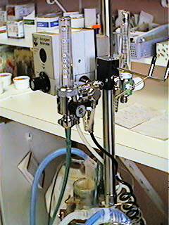 - The Blue "Inspiratory" corrugated tube provides the Flow of Mixed Oxygen and Air, at the constant flow rate set on the Ventilator.
