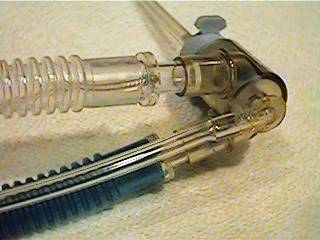 - The smaller clear tube monitors the airway pressure at the Wye.