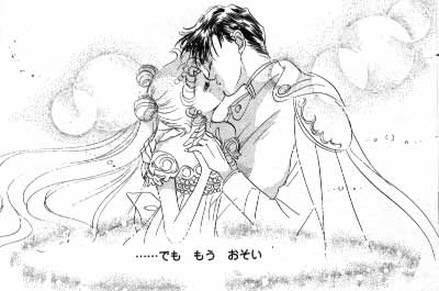 Hmmm... what is there to say about the couples of "Sailor Moon?" Lots! ^_^; First off, the main two couples of the entire series (Usagi and Mamoru & ChibiUsa and Helios) seem *very* romantic. I don't know about you guys, but I just love seeing those groups together! They're just perfect matches, and it's really interesting to see how they act to eachother through the series...through both good and bad times. Focusing a little bit more on Mamoru and Usagi; they seem almost too good to be true. They fight together, have saved lives (including the other's) and marry in the future. I just love how Naoko portrays true love as something special to treasure and keep forever. She also shows that sometimes you have to fight to keep it safe, and that you have to go through good and bad times for it - but it's worth it in the end! |