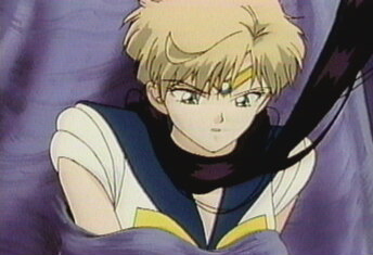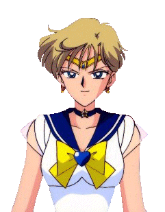 Haruka appears to be an arrogant girl when you first see her in the series, but we soon find out she's far from arrogant. She enjoys teasing Usagi (Sailor Moon) and Minako (Sailor Venus), because they both mistook her as a young man. I personally like Haruka a lot, mostly because she thinks she's better than almost everyone else, and lets them know it! She is a bit musically-inclined, and plays the piano very well. Transformed, Haruka has powers over the earth and wind, making her quite powerful, indeed. Haruka is a very athletic person. She races cars, pilot's planes, races in track, does fencing, and often drives her motorcycle when things are bothering her. Now to the "senshi" section of Haruka's profile. ^^ Sailor Neptune and Uranus were searching for pure hearts that contained their talismans. It so turned out that Uranus and Neptune carried the talismans in their own hearts! Their pure hearts were taken, the talismans were revealed, and ... Well I'll just leave it at that so as there are no spoilers here! One last thing! As you might already know, Haruka and Michiru are lovers. Yes, that's right. They're in love. Their relationship is wonderful - they would die for each other, and are truly dedicated to one and other. For those of you who have seen the "new" Sailor Moon episodes on Cartoon Network, the company who dubbed them, CWI, utterly ruined Michiru and Haruka's relationship. They made them cousins! ^^ ::sniff sniff:: How terrible! |