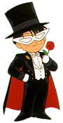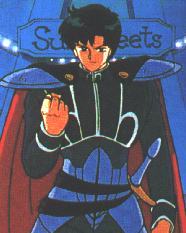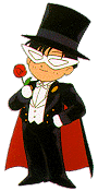 "Always able to show up at the last possible moment, Tuxedo Mask turns out more often than not to be the sailor senshi's cheerleader. His parents killed in a car accident while he was young, Mamoru for a while, knew very little about his past. After many recurring dreams about freeing the Moon Princess, and retreiving some of the rainbow crystals, he realizes his destiny as Tuxedo Mask, the protector of the senshi and of Princess Serenity. Tuxedo Mask, as his name implies, has one of the smoothest costumes in the entire show: He's the only guy slick enough to wear a tuxedo 24-7. Except maybe James Bond. Usually showing up just when things look worst for the senshi, Mamoru usually distracts the youma with an enchanted red rose, giving an encouraging speech to the senshi. In the manga, he also had several other powers, including telepathy, and energy blasts from his cane, which he could also use to deflect attacks." - Taken From www.tuxedomask.com. |