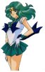 Sailor Neptune appears at the beginning of Sailor Moon S her misson was to find the three tailsman. Michiru actually carried one of the three tailsman, the Deep Aqua Mirror. Michiru always exmaines the situation before fighting. She has a calm and nice personality. Her talents include Painting, swimming, and playing her volin. As Sailor Neptune, she is very serious, and willing to die for her cause. But she can't stand to see Sailor Uranus get hurt and will compromise for her partners safety. In Sailor Moon Stars she and Uranus join with Galaxia (by taking her bracelets). But their power breaks the evil spell and they turn agaisnt Galaxia and attack just before they are destroyed. |