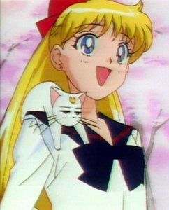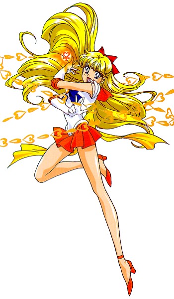 Before Minako became Sailor Venus, she was originally Sailor V in England. This was very ironic because in England she was ofen in trouble with the police as herself, Minako. Minako first appeared as Sailor Venus to save the other scouts when they were losing to Kunzite and Zoicite. She is often called the leader of the inner scouts because she is a strong fighter and has the most expirience as a scout (having been Sailor V even before Sailor Moon was discovered). Her friends would tell you that she is a very friendly, kind, and sensitive to the feelings of others, which explains her like of romantic movies. Minako also has a guardian cat, Artemis. |