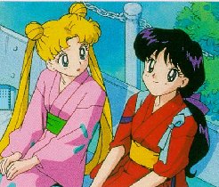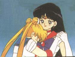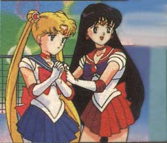 As you all should know, Usagi and Rei fight a lot more than most of the other scouts. In my opinion, it seems to make the series a ton more interesting. Who would watch the series if everyone got along all the time. It wouldn't be like real life, which is what Naoko was probably aiming for. Anyways, Sailor Moon and Sailor Mars *do* seem to hate eachother's guts at times, but when it really counts, they're there for eachother. As Makoto noticed when she first appeared in the series, the two of them are more like sisters than friends. |
