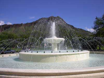 World Famous Diamond Head as seen through the Dillingham Fountain.