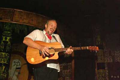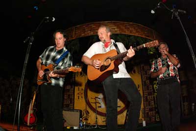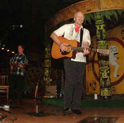 On Saturday November 15th The Mudman (Kevan Scott) Presented: 2001 Grammy Award Winner Dave Alvin with Rick Shea and Oahu's own guitar wizard Ledward Kaapana at the Hawaiian Hut. Almost unbelievably, this was Dave Alvin's Hawaii Debut. Alvin's eclectic mix of folk, blues and country combined with exquisite guitarmanship has garnered him a steadfast following amongst "roots" music fans worldwide. His songs of the West have been likened to those of Springsteen's New Jersey and Lou Reed's New York. Bob Dylan asked him to warm up his 1998 tour. Richard Thompson, a Honolulu favorite, has referred to Alvin as "one of the world's greatest songwriters".