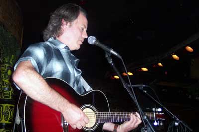 Along with his brother Phil, Dave was frontman for the roots-rock band The Blasters and was also a member of hard edged L.A. rockers, X. Alvin's accompanist, Rick Shea, delighted the crowds of Honolulu February 15, 2003 with his vocals, guitar and songwriting skills. (See some pictures from that night at Anna's.) Unfortunately, I wasn't able to concentrate on taking as many pictures as I would have liked to because I was being hassled about the flash on my camera, even though there were several other photographers in the audience who were also using their flashes (out of neccessity). If any of those other photographers have more photos from this "Guitaraganza", please contact me about posting some of them here!