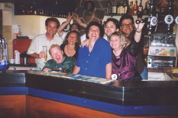 Next stop was England, I was planning to meet the Queen for lunch, but instead I ended up having lunch with Rince and Wowee (wowee is another gang member from #europe). Rince and I only had a few hours in London so we wanted to make the most of it. We caught a bus and took in some sights around london. I got to see where the Queen lives :) Next we headed back to Heathrow Airport to met up with another #europe gang member Hazlenut. Once we found her, she took us to Gaffa and Mags place.... yes some more gang members. Well it was Friday night when we arrived, and yes it was a party night. Also at gaffa place was his Son Beachy and his wife Ang...... what a night of drinking (water), ircing, and chatting .... You didnt hear it from me, but Rince left his underwear under Mags kitchen table:) Oh and Hazlenut threw a bowl of cornflakes at me, thank god for Mags, she washed my top for me!!!!! AHHH Saturday night we headed down to the local pub for a ABBA show, I loved it so much. I just want everyone to know that Gaffa and I were the last one up drinking (water) :)!!!!!!