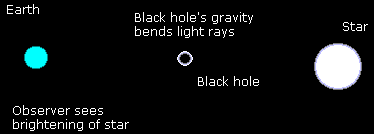 From the viewer's point of view, the star they see is not where the star acttually is. It is because the bending of light. The stars appear to be displaced. the "bending of light" factor does not only apply to black holes, it apply to any other stars with similar mass. The effect was noticed during a solar eclipse where light from distant stars were bent by our own sun.