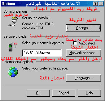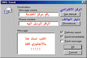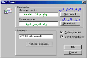 7 ارسال ما سبق الى هواتف نقالة اخرى اضغط ثم ادخل القيم المطلوبة كما يلي
