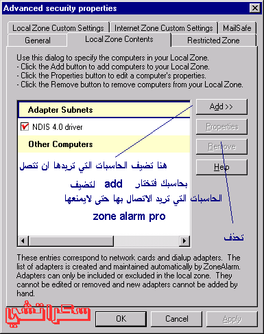 البرنامج يقسم الشبكة قسمين local منطقة محلية خاصة بالحاسبات المتصلة