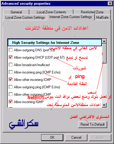 عند وضعك علامة صح امام block antrnet server وذلك للسيطرة على التورجان